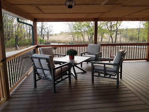 This wonderful, secluded home has so much to offer! Lots of recent updates include a NEW 1400 sq ft covered wrap-around porch with composite deck, new fixtures as well as solar lights around the deck and deck of the swimming pool! The 40 X 70 shop has a gravel floor and electric. Water is FREE due to the well being shared with 2 other neighbors. Well pump is approx 5 years old and has always provided all the water needed! There are several new windows (mostly west, south and some east). This all electric, beautiful home has had amazing care and non stop maintenance. The north boundary is Corp of Engineers property that allows bow hunting only. That is approx 415 acres! This property has loads of public hunting ground surrounding it there will be no end to the wildlife you will get to watch! White Hall Bay camping area is just a hop skip & a jump and of course Fall River Lake is a main attraction! You aren't going to want to leave this home when you come to take a look! Call us today for your own private viewing! Evergy says the 12 month average for the previous 12 months for this all electric home/property is $268 per month. That includes the huge shop and water well.
