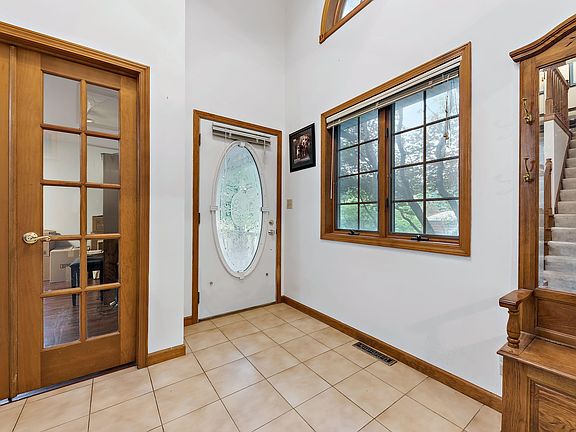 A welcoming wrap around porch greets youand leads to the front door. Once inside, just past the foyer the openness of the Living Room will impress with it's 11 ft. high ceiling & a gorgeous fireplace flanked by floor to ceiling windows. The kitchen has Corian countertops, a huge center island that seats four, & stainless appliances including a gas range w/ convection oven. plenty of light comes in from the vaulted ceiling skylight & sliding glass door to the deck. The main floor has a bedroom w/ French doors that could be used as an office. Upstairs is the large Master Suite with a luxury bath as well as 2 additional bedrooms & full bath. Large unfinished basement for storage. The home also features a roomy, 3 car garage, large back deck and brand new state of the art septic system. Other amenities include Duneland Schools, a community clubhouse, pool & tennis courts. Horse stable & pasture are also available. Easy access to major highways, Valparaiso, Chesterton, Portage and Michigan City.