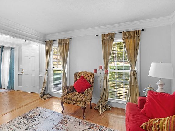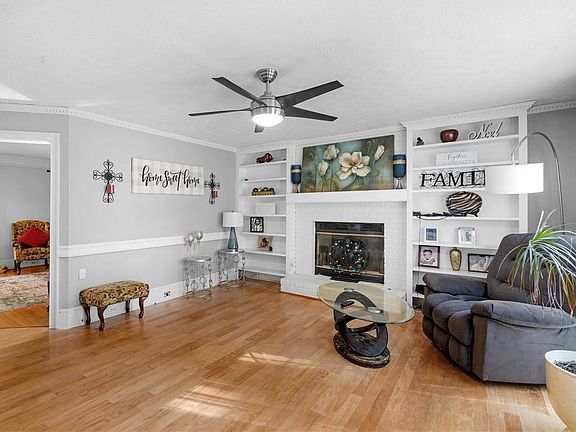 This single family 4 bedroom, 2.5 bath home, located in a well established golf course subdivision, offers a lovely view of the golf course. Interior has hardwood, tile, and carpet throughout. Living areas feature a formal dining room, a living room (flexible for office/library), and a family room with a masonry gas fireplace flanked by built-in bookshelves. There is also a convenient office alcove. The kitchen has ample counter space and cabinets, a breakfast bar, and a breakfast nook, (with access to a spacious, rear deck). The primary suite is spacious with dual vanities, a soaking tub, and multiple closets, including a walk-in. Partially finished daylight basement features a large finished room (ideal for a game room, office, or storage) plus expansive unfinished storage space. Roll-up door access for easy storage of lawn equipment, golf cart, etc. The backyard is beautifully landscaped, featuring a deck overlooking the creek and hardwood floors that buffer the golf course. Optional membership available for swim, tennis, and golf, but no mandatory HOA fees. Ask how you can receive up to $1500 credit by using one of our preferred lenders. Exclusions may apply.