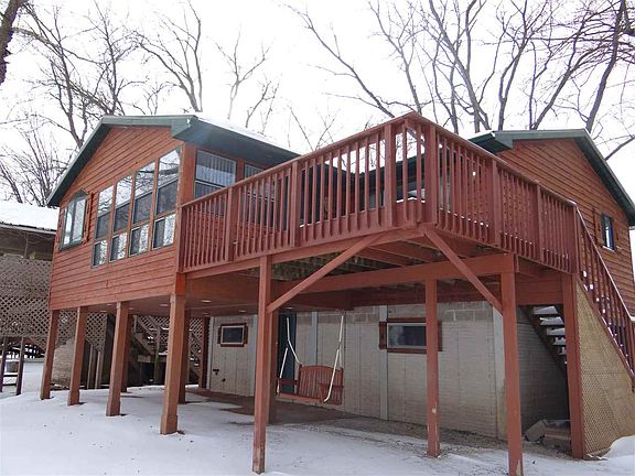 Great cabin on the river. 3 bedrooms, 2 full baths, 1 car garage, full basement. Amazing view of the river. Includes 2 docks, large deck and a patio. Very well kept.