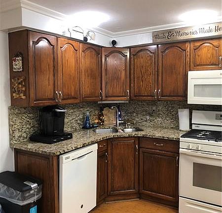 Master bedroom with ensuite on the 1st FLOOR with walk in full bath that is handicapped assessible.Huge closet.Welcoming covered front porch with pond.2 story colonial with 3 spacious bedrooms and 3 full baths.Open concept kitchen and dining room. Granite counter top and backsplash, great island,lots of cabinet space. Much storage,neutral décor.Extensive landscrape,with 2 decks,great for cookout and entertaining Comfortable lower level gameroom.Easy access to Downtown.2nd gas stove in basement stays.