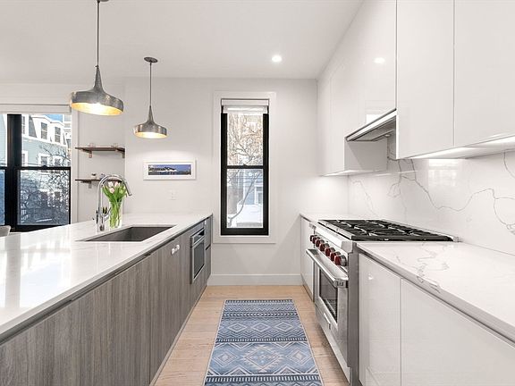 Welcome to unit 1 at 586 East 3rd Street, a 2018 new construction Southie dream home. This 3-bedroom, nearly 2,200 sq ft residence checks every box. The open kitchen features custom Italian Scavolini cabinets, waterfall quartz countertops, under-cabinet lighting, and Thermador/Wolf appliances. The dining area flows into the oversized living room, with a private deck for outdoor relaxation. The spacious guest bedroom includes a large closet, while the primary bedroom offers double closets and a spa-like en-suite bath with double vanity and walk-in shower. A sparkling hall bath completes the main level. Downstairs, the third bedroom doubles as a family room, WFH space, or gym, with another en-suite bath. Ample storage throughout. Additional amenities include 2 covered parking spaces, high-efficiency A/C, California closets, stylish lighting, and engineered hardwood flooring. Conveniently located near bus lines, the Seaport, the beach, and E Broadway shops/restaurants. Move in and enjoy!