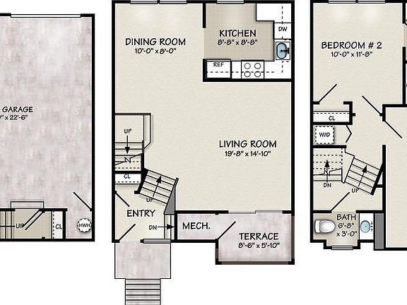 - Dining Room, Kitchen, Living Room, Bath Main, 2 Bedrooms, Bath Half