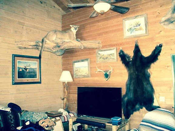 MOUNTAIN CABIN FOR SALE!! A hidden gem with 6.66 acres of beautiful mountain forest. This stunning 3,000 sq ft 2-story custom log-framed cabin has an open floor plan with vaulted ceilings, 3 bedrooms, 3 bonus rooms, 2 bathrooms, 5 entrances, 2 Fireplaces, a wood stove, an adorable kitchen and a grand living area with a spectacular view of the surrounding mountains. Custom built redwood and aspen baths and custom stone hearths. Includes a barn, wood shed, 20X20 greenhouse, shop/garage and a chicken house.