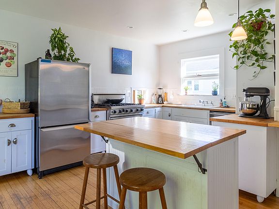 Charming, modernized farmhouse surprises and delights in Meeting House Hill! This updated home effortlessly provides considerable space while maintaining a cozy feel. The sundrenched rooms offer areas for work, relaxing and entertaining. The kitchen, with moveable island to suit the occasion, and Viking stove promises elevated cooking and entertaining, as does the dining room with French doors and built-in bench seating for extra flair. A touch of whimsy is found in the pass-thru cutout from kitchen to the den...perfect for beverage & popcorn service! Originally an apple orchard, one tree remains, actually a hybrid of 4 varieties – one of the many unique features of this home. Another is the full living space separate from the rest of this house. Originally used as an attached barn; this area is now complete with private entrance, living area & loft with a full bath. Ideal for guests, lodging potential (with Town approval) or a home office. The area is kept toasty by a Rinnai and is also plumbed for gas. In the main house, there is plenty of character and room with hardwood floors throughout, a wood burning stove and elegant, original cast iron heating elements. The primary bedroom features an updated bath & shower and the claw foot tub is a delightful find. Storage abounds on every level and there's flexible use spaces on the first or second floor. Outdoors, there's convenient wood storage and gardening opportunities all around the home, and that apple tree! Soak in the tranquil feel of the neighborhood from your large, wrap-around porch before heading over to one of many of South Portland's attractions, all within easy reach, including Willard Square & beach, Bug Light Park, small specialty stores & restaurants. Enjoy all of the charm of yesteryear with all of the modern conveniences in a location that can't be beat!