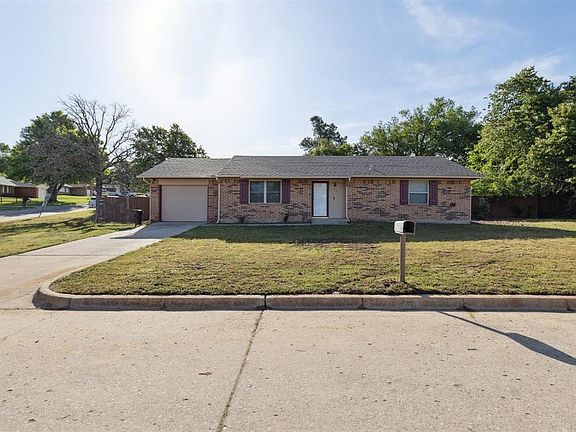 Huge price reduction!!!Darling three bedroom, one and a half bath home with a NEW ROOF, in the heart of Choctaw!! This home has had some fresh updates! From the moment you walk in, you’ll notice the nice big living area that is light and bright. The kitchen has a nice eating area, wood cabinets, tile floor, and nice storage. The one-car garage is oversized with nice cabinetry and is recently painted. The hallway bath is nice, light & bright with white tile. The first bedroom has laminate flooring, a ceiling fan the other two bedrooms have wood tile flooring. The master also has a half bath. This home sits on a corner lot that is oversized and was recently seeded, so new grass should be coming up soon. The backyard is huge with a large covered patio, privacy fence, and a storage building. This home is close to all the Choctaw amenities. Don’t miss out on this sweet home!