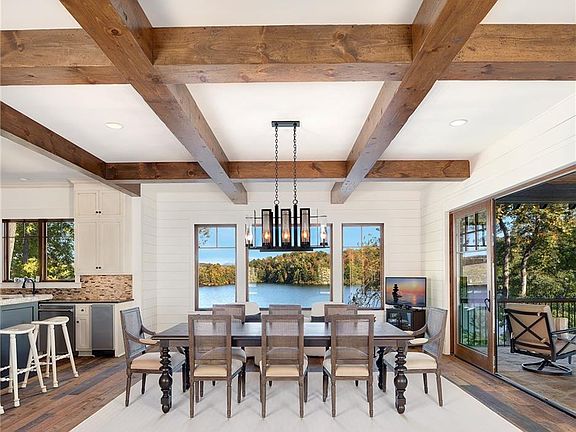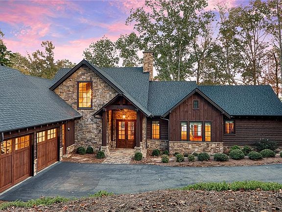 The simplicity is astounding and defines this home's appeal. The property speaks volumes as one of a kind with outstanding lake and mountain views and impressive lake frontage. Rare combination when you also enjoy an easy walk to the lake! The warmth of the reclaimed varied width wood floors is complimented by the light shiplap walls. The wood beamed accents frame light colored ceilings and complete the overall casual lake elegance desired. Photos are shared with permission by designer, photographer and builder with pride in a project well done. The architect, Jim Seward, is credited with a few design changes on the fly that kicked the end results up a notch. Opening the wide stone support to maximize the lake view and expanding the upper level from loft to full guest suite are just two examples of him contributing to the owners' vision. The builder, Doug Coghlan of Hillcrest Homes, was able to source distinctive materials not seen in other homes. The bi-fold windows at the lower level bar and retractable screen earn kudos and highlight his team's resourcefulness. Respect between the parties involved lead to exceptional results. Notable features include petrified wood backsplash in the kitchen, stone accents in the powder room and master bath, polished concrete floors on the lake level, pre-planned space for an elevator, phantom screens on the master suite porch, a balcony overlooking the lake on the upper level, incredible lake and mountain views from most rooms, laundry facilities on main and lower AND outdoor access on every level. A premier property in all respects! Cliffs Membership is available for a separate purchase, allowing you to enjoy amenities at SEVEN fabulous Cliffs properties, three of which are on Lake Keowee.