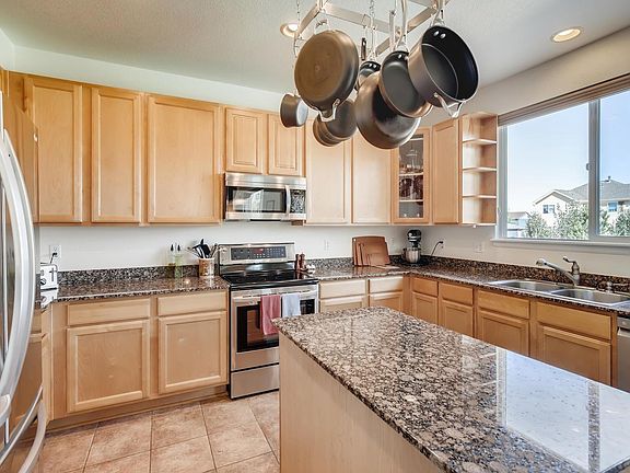 Beautiful home on large on 1/3 acre lot! Granite countertops, stainless steel appliances, main level bedroom and bath, newer carpet. New exterior paint and metal decra shake tiles in 2017. Master suite, upstairs laundry, oversized 3 car garage with keypad entry on door, plenty of light throughout home. Great location in desirable Castlewood Ranch. Full unfinished basement for plenty of storage or ready to be transformed into additional living space. Many trails close by, walking distance to Elementary and Middle School. All appliances included.