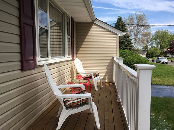 Wonderful Ranch Home renovated in 2010! Light and Bright and ready to move into! Great Starter home or for those scaling down! Enjoy relaxing on the open front porch or on the rear deck overlooking lush rear yard, which is fenced. Beautifully redone kitchen with large pantry and center island, large family room, updated bath, newer roof, newer windows, vinyl siding, hardwood floors! All appliances included plus central air. Spacious 2 bedroom home changed from 3 bedrooms to gain closets and large kitchen. Large rear shed for bike and garden tools plus pull down attic stairs for more storage. Close to Shopping, beaches, NYC fast ferry, great location, great value!