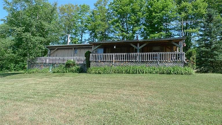 This beautiful retreat has been so carefully rebuilt that its original manufactured construction is hardly recognizable. New roof w/very strong supports,recently-rebuilt furnace, insulated water pipes, newer flooring, large, partly-covered wrap-around deck, wood siding, etc. Superb hunting on this quiet spot and all around the area with permission. Includes a 20' X 24' pole barn/garage and a 10' X 12' utility shed, both excellent shape. AND, it comes completely furnished, including large flat screen TV, memory foam mattress and even 2 lawn tractors. JUST MOVE IN and enjoy the seclusion and the fine views. Motivated owner; make an offer!