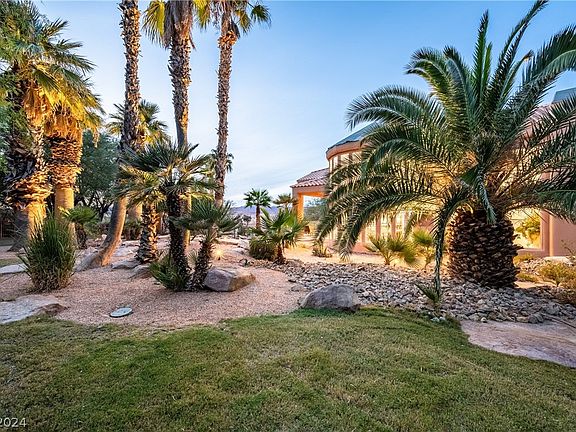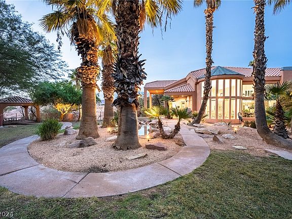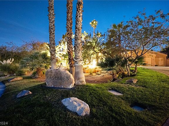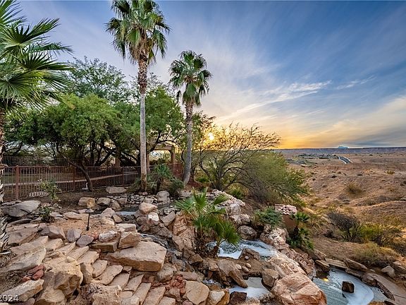 Welcome to "The Cascades". Located within the gates of the very desirable Ventana Community, sits the impressive 1.41 Acre Cascades home. This home welcomes you with extravagant landscape, a gorgeous circular driveway, Impressive Portico, & offers grandeur to the homeowner in ways that cannot be found in any other home in Mesquite. Impressive amounts of travertine tile laid throughout, Floor to Ceiling windows that act like waterfalls of natural light coming into the home, a chefs dream of a kitchen offering brand new Wolf & SubZero appliances, & endless amounts of entertaining/seating areas for either the most private of conversations or the most welcoming gatherings of friends. find features from double-sided fire places, extra lounging areas, a 15+ seating Theatre room, a MASSIVE 1,833SF Garage, to the most adorned Primary Suite with balcony views overlooking Mesquite. A home with palm trees from the Dunes Casino in Las Vegas, and artwork by John Prazen, this home is impressive!