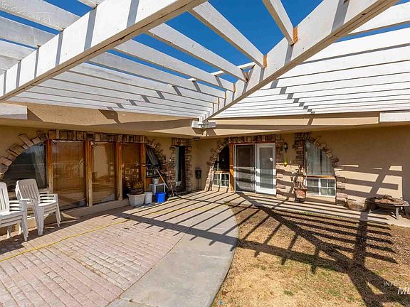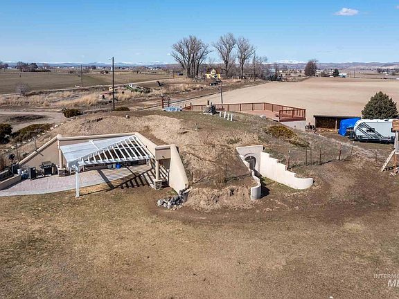 Acreage property with 360 views and an opportunity to own a one-of-a-kind exciting, unique, innovative, craftsman earth home. This Earth Berm construction has a wonderful split room floor plan with thoughtful window placement to provide lots of natural light. Very efficient keeping cool in the summer and warm in the winter. Repainted interior, two massive lofts in bedrooms can be used for storage, guests or a fun fort for children. Plenty of room to build a shop and have a hobby farm with pasture accommodating horses, cows, chickens, garden, RV parking. 24x24 garage conversion currently being used as storage, shop, tack room but can easily be converted back into a garage or continue with the idea to convert into a large master suite. Beautiful massive yard perfect for entertaining, the kid's playhouse stays. Low property taxes! Come check it out and make an offer! Lots of possibilities on this property. All data deemed reliable, buyer to verify all information.