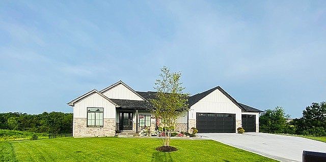 Less than two years old with many upgrades. Over a half-acre lot on a cul-de-sac in one of the hottest neighborhoods in southern Boone county. Exterior boasts an aluminum fence, screened porch, open deck, covered walk-out patio, professional landscaping, sprinkler system, architectural shingles and James Hardie hardboard siding with stone accents in front and a stamped concrete front porch. Upgraded, insulated garage doors open to three oversized bays in a heated, insulated garage with an epoxy floor. The garage leads into a drop zone with bench and shelves built-in that opens to the laundry room that is connected to the master suite! Master suite has hardwood floors, a tray ceiling and custom blinds. The master bath has a massive tiled shower with two shower heads, tile floors, dual onyx vanities and counter space and painted cabinets. The kitchen features stainless steel Kitchen-Aid appliances and a stainless steel exhaust hood above the gas range. The countertops are quartz, the abundant cabinets are painted and there is a walk-in pantry. Engineered hardwoods continue through the breakfast nook and great room. The great room features a gas fireplace with drystack stone surround and three huge windows to watch the sunset. Custom blinds throughout the house. The two guest bedrooms upstairs in this split-suite design have upgraded carpet and memory foam pad and custom blinds and they share a guest bath with onyx vanity and a tile floor. Downstairs is a huge family room with a ventless gas stove, vinyl plank and ceramic tile floors, a wet bar and second refrigerator and custom blinds. The downstairs bedroom has a luxury vinyl tile floor and functions as an office. The bathroom downstairs is a full bath with onyx vanity and tile floors. The lower level also includes nearly 1,000 square feet of storage space and a fitness room with a commercial vinyl floor. There is a sump pump and water softener system as well. Electrical service is wired with a transfer switch and a portable generator conveys with the house, as do four flat screen TVs mounted.
