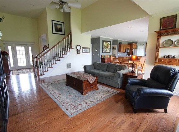 This beautiful home, built by Danny Davis, is located just fifteen minutes from Burkhardt and Morgan. You will enjoy fishing from your backyard in the spring fed lake while listening to the sounds of nature around you. The foyer welcomes you into the open floor plan on the main level of the home with hardwood floors and a glass front door with side lights and decorative molding. The hardwood floors continue throughout the great room, which features cathedral ceilings, a gorgeous fireplace, and views of the lake. With ample storage in the crown-topped cabinetry, a large island with a breakfast bar (with Corian countertops), Kitchenaid stainless appliances (including an ice-maker), a generous pantry, the kitchen has everything you need. There is also a formal dining room with wainscoting, chair rail, and decorative columns leading to the foyer. The master suite boasts a trey ceiling with crown molding and a spacious master closet and bath with a jetted tub, walk-in shower, and twin-sink vanity. Upstairs you will find two additional bedrooms, both offering large closets and beautiful views of the property. There is also a 30' x 12' bonus room on the upper level of the home. The patio off the back of the home is where you'll take in amazing views of the lake while enjoying the outdoors. You will fall in love with this wonderful home the moment you see it. Pole barns welcome on this 2.5 acre property. Estimated 2015 Property taxes with Homestead Exemption will be $2,300 per year.