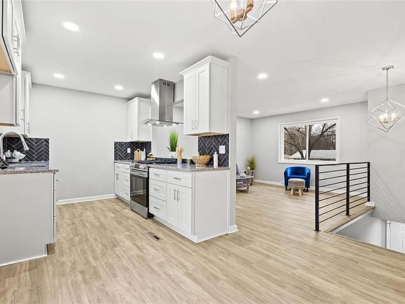 **Multiple offers rcvd and deadline is 12-31-23 at 4:30pm. Totally remodeled, beautiful 3 bed, 2 bath raised ranch home at an affordable price! 3 newly carpeted bedrooms are on the main level with a 4th non-conforming bedroom, full bath and additional living area on the lower level which may be accessed with no stairs. You'll love this new construction appearance with fresh neutral paint and luxury vinyl plank flooring throughout, two baths with granite & beautifully tiled showers. Iron railings and tasteful light fixtures accentuate the openness of the living room, dining area and kitchen that boasts granite countertops, a gas range and stainless dishwasher. Enjoy the many conveniences including a fenced backyard with a large deck to enjoy your coffee, shed for storage, vinyl siding, new double hung tilt-in windows, close location to NKC Schools, easy highway access, and various shopping & dining options.