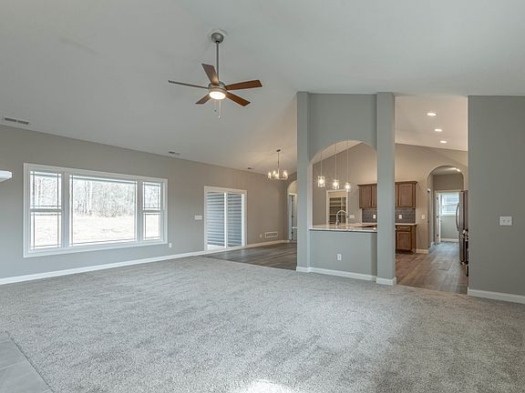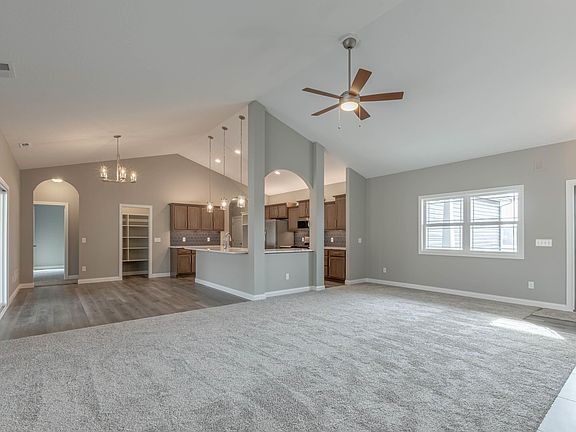 STUNNING Open-Concept Ranch Custom Built w/ Pride By Majestic Homes. A Stately Exterior & Covered Entry Set The Stage For Stylish Comfort Found Throughout This Incredible Home! * Open Plan Blends VAULTED 2-STORY Great Room With Expansive Backyard Views & Gas Fireplace To Casual Dining & GOURMET KITCHEN. The Santee Plan Features Stunning Quartz Countertops, Large Walk In Pantry, Staggered Custom D&B Cabinets w/ Crown Molding, Beautifully Tiled Backsplash & Breakfast Bar. This Home Is Built w/ An Engineered Open-Web Truss System (*squeak-free), HELow-E Simonton windows, HE Thermatru doors, HE 50gal hot water heater, HE 95% Furnace & HVAC w/ Return Vents In Each Room To Maximize Efficiency, Spray Foam And BattInsulation All Exterior Walls, & E3 Water Softener Included! Front yard is Irrigated, Landscaped, & Sodded (backyard graded and seed). 1/2/10 RWS Builder Warranty and Appliances Included! Serene Wood Lined View & Future Trails To Buckner's Park Coming Soon!