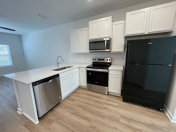 For Lease - New construction 3 BR, 3 full bathrooms townhome at Tyndall Station, located just 12 minutes from Tyndall Air Force base! Craftsman style townhome community developed by Valor Homes offers nicely designed floor plans with spacious and open living area. As you step inside, you'll feel the open and airy floor plan with tall ceilings and vinyl plank flooring throughout the downstairs. The kitchen features quarts countertops, shaker cabinets, stainless appliances and a breakfast bar. First floor bedroom with full bathroom and laundry room leading to the back patio with partition fencing between neighbors. Upstairs is the master suite with tray ceiling, walk-in closet and ensuite bathroom. The bathroom offers double vanities, walk-in shower, and large linen closet. The second upstairs bedroom has a walk-in closet and ensuite bathroom. *Pets negotiable under 30 pounds with $250 pet deposit, $50 pet fee, $25 monthly pet rent per pet.