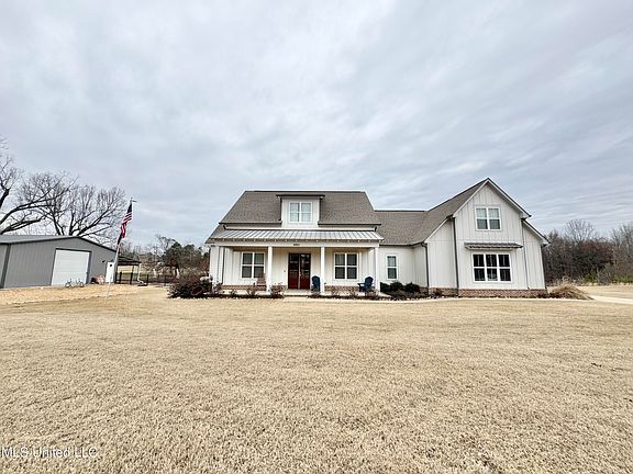 Sometimes all the pieces fall into place and the home that you have been searching for drops right into your lap. 5861 Belmont Rd is just that home. This beautiful farm home sits on 1.98 pretty acres in desirable Hernando MS. The home has 5 bedrooms, 3 full baths, and 2 half baths. The entry of this home has a custom ceiling and double doors. There is a large open kitchen with huge island, a brick accent wall, gas cooktop, eat in area, and walk in oversized pantry with cabinets. Downstairs you will find 4 bedrooms (primary on one side and 3 bedrooms on the other side) all with walk-in closets, 2 full bathrooms both having double sinks, 1 half bath, a locker area off the garage, a 15x15 formal dining room, and a GREAT great-room with brick fireplace. The primary suite has a soaker tub, separate walk in shower, double sinks with lots of cabinets, huge walk in closet that connects to the laundry room with a sink and built-ins. Upstairs there is a large bedroom, full bathroom, and lots of attic storage. The back patio has french doors, is covered, and is plumbed for an outdoor kitchen. Now you would think that would be enough to get you to come see this beauty... But wait there's more (sorry I had to do that). The garage has an accent brick wall, storage area, and an 8-person underground storm shelter that is accessible from the garage floor. There is a 16x40 inground fiberglass saltwater pool with a heater and lots of surrounding concrete. The backyard has a 4-foot-tall wrought iron fence. One more thing, there is a 30x40 shop that is heated, cooled, and insulated. The shop has a half bath, two entry doors, and two rollup doors along with a 10x40 covered porch that faces the pool. There is a Generac generator system that runs the home and shop. All this plus Sooo MUCH more, call your favorite agent today for a showing. This property is a relocation property.