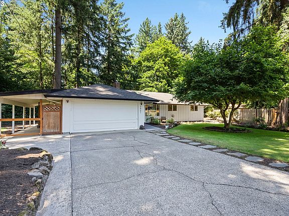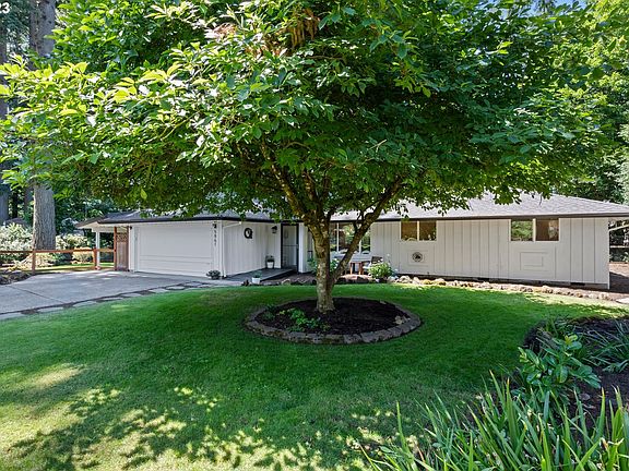 This immaculate, one-story, mid-century ranch has been tastefully updated and is nestled at the heart of a cul-de-sac on an expansive quarter-acre+ lot. The property is adorned with beautiful pines and vibrant spring blooms, providing a private, park-like setting with numerous year-round outdoor entertainment options. It's conveniently located with direct access to the highly-rated River Grove Elementary School, playground, sports fields, and Community Dog Park. The home also offers quick access to I-5, shops, dining, grocery, transit, Bridgeport Village, Downtown LO, walking trails, and even includes a Lake Grove Swim Easement! A nearby Tualatin boat ramp opens up opportunities for paddling, fishing, and other water activities. Recent updates to the home include a kitchen remodel with new appliances, countertops, backsplash, and fixtures, adding skylights in the main room to enhance natural lighting. The backyard and side yard are fully fenced, with a covered area for a fire pit. The home features a newer AC unit and hot water heater. You?ll enjoy an open floor plan with two fireplaces and hardwood floors throughout, four bedrooms, two living spaces, a two-car garage with ample storage, and additional RV parking. The Benfield cul-de-sac, River Grove Neighborhood, and surrounding streets are known for their welcoming, convenient, and friendly community. This gem is truly the perfect place to call home.