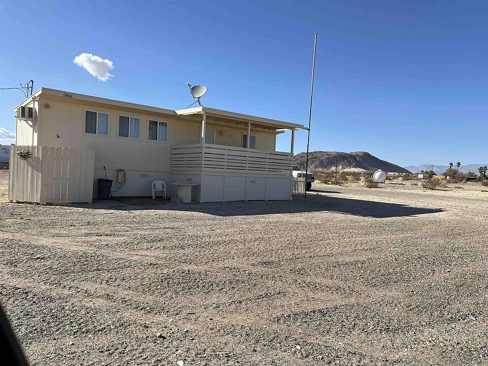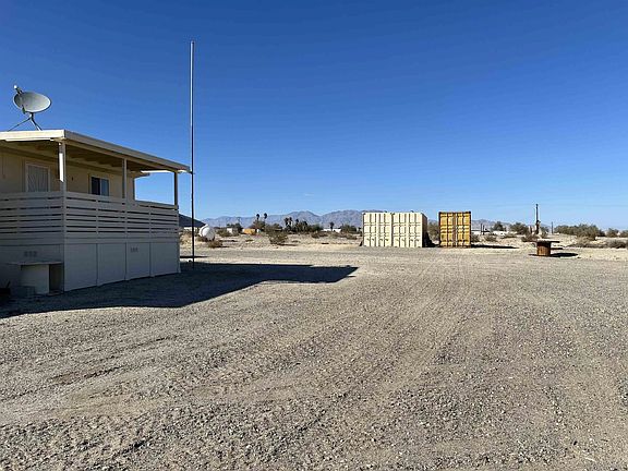 This unique furnished small home has stainless electric appliances, and a well, on 10 fenced acres, just south of the Ocotillo Wells Fire Dept. This property is in good condition and is move in ready. The property has great views of the surrounding mountains including Blow Sand. House was moved onto the property, has the final inspections sign off. Sellers made this a cozy get away home in the heart of the off-roading capital of San Diego county. 1 outbuilding plus 3 sea containers. Outdoor shower!