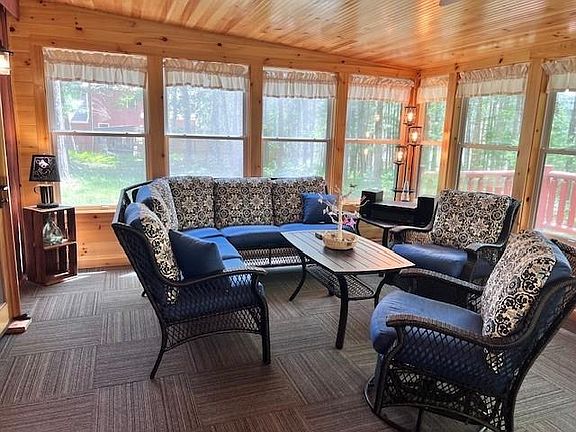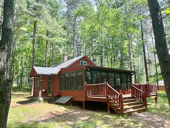 This 2 bedroom, 1 bath seasonal cabin with 139' of frontage on serene Mary Lake, just minutes from Eagle River, may be just what you have been looking for! After a busy day on the Eagle River Chain, get away from the crowd and come back and grab the paddle board or kayak and enjoy your own little slice of paradise. This charming cabin has classic vertical log, Northwoods style, with knotty pine interior and wood burning fireplace. You will love spending time in the beautiful sunroom overlooking the wooded yard and water. There is a lakeside deck for relaxing and entertaining family and friends and small platform down by the waters edge to watch the sunset. New well installed this past summer. If you have been searching for a perfect little getaway cabin that won't break the bank, this is it!