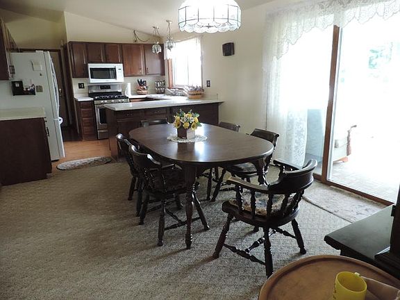 Located in the Peck School District is where you will find this immaculate three-bedroom brick ranch with attached 2 1/2 car garage on 13.097 acres in a picturesque country setting. The home features a 14' x 10' three-season room and 88' x 48' pole barn with many possibilities such as vehicle repair, storage, toys or workshop. Basement is full block with dual access from garage and dining room. The basement features a shower & sink with the possibility of being a full bathroom, cool storage for a potential wine or canning cellar, laundry room, and lots of additional space for your family. The home features replacement vinyl windows and fireplace in living room for a cozy atmosphere. This home includes energy efficient geo-thermal heat, Generac 14KW generator connected to LP gas for backup power. All appliances included to make this home move in ready for your family. This is a well-maintained home for making family memories.