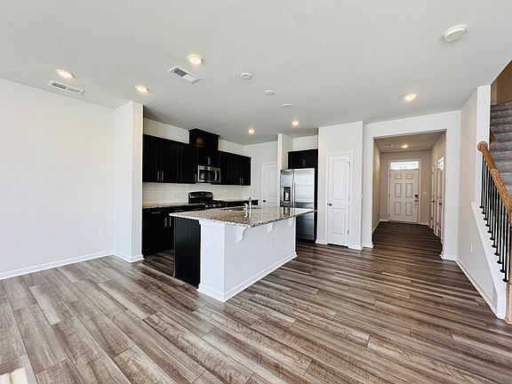 The main-level Great Room flows seamlessly into the dining room and chef-caliber kitchen with island featuring quartz countertops, stainless steel appliances and pantry. While the patio is perfect for outdoor activities. Upstairs are two secondary bedrooms and the owner's suite complete with a walk-in closet, full-sized bathroom and laundry room with washer and dryer included.