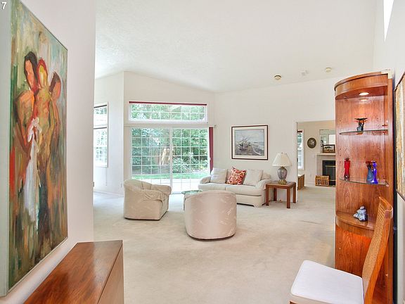 You can live in this one level home, most days, without turning on lights; vaulted ceilings & skylights abound. Cook & eat in updated kitchen w/ dining nook & bay windows. Be pleasantly surprised w/ exquisitely remodeled bath rooms, master has large soaking tub. Enjoy the cozy library/den/office & its wood burning fireplace. Host a gathering in the large dining area. Decide how to use attractive out building, now an artist studio.