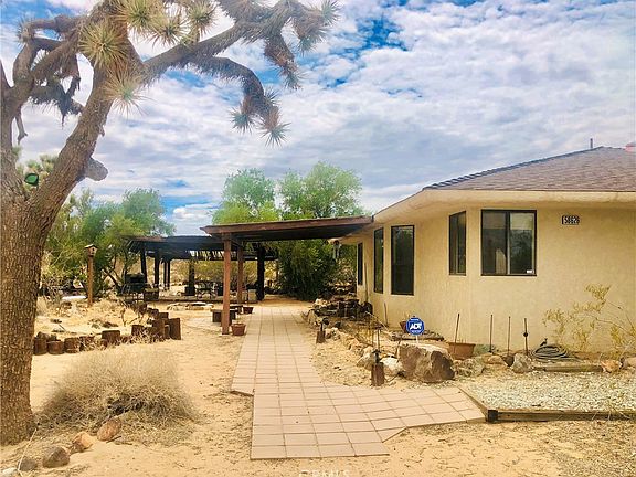 The Family Ranch on 5 acres you've been looking for! Endless potential to make this your weekend escape, short term rental, or forever home. This spacious 1887 Sq Ft 3 bed, 3 bath home includes a bonus room that can be your home office or artists studio. The open kitchen flows into the dining area perfect to entertain. Custom handcrafted cabinetry must be seen to appreciate especially in the pantry/laundry room. Tile floor throughout with carpet in the living area and bedrooms. Ceiling fans to keep you comfortable. Clean and bright bathrooms include skylights and newer fixtures. Outside you have awnings and huge olive trees providing an abundance of shade for BBQ's and gatherings. Trails throughout the yard are lined with rocks or telephone poles perfect to walk around with your morning coffee while you enjoy the peaceful sunrises. An over-sized 2 car garage is an ideal set up to also use as a workshop. An additional shed and carports throughout the property provide additional storage and shaded parking. RV parking and hook-ups are also set up. Plenty of room on this property for horses and animals. Natural undisturbed vegetation/cacti on portions of the property including mature Joshua Trees. Endless hiking and off-road trails to explore. Close to the Goat Mountain Astronomical Research Station - Grab a chair for a night full of unbelievable stargazing! Plenty of local attractions including Giant Rock, King of the Hammers, The Integratron, and La Copine Restaurant. Short drives to Pappy and Harriet's in Pioneertown, and Joshua Tree National Park. Note: Fancher Rd is also Stearman Rd. Contact today and schedule an appointment to explore this property and experience the solitude of Landers!