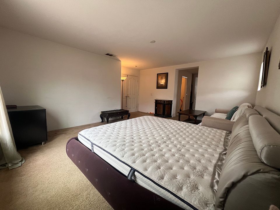 Looking for a single tenant or a couple. This spacious master bedroom can comfortably fit a king-size bed and a sofa. It also features a walk-in closet and a private bathroom with: Separate shower and bathtub Large soaking tub Private toilet room The kitchen is shared among tenants. The landlords, a friendly couple, live downstairs and work at a senior center during weekdays. Currently, there are two other tenants living upstairs both are truck drivers and are rarely home. No smoking and party in the property. All utilities and internet will be covered