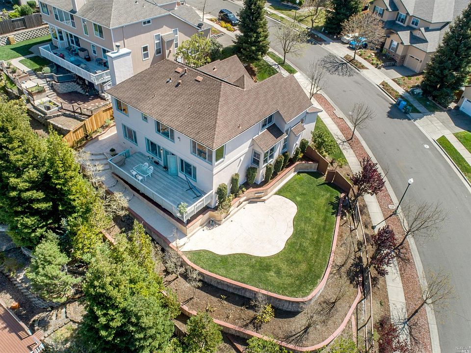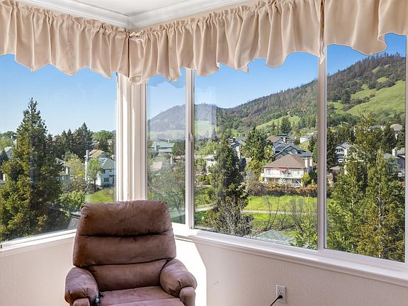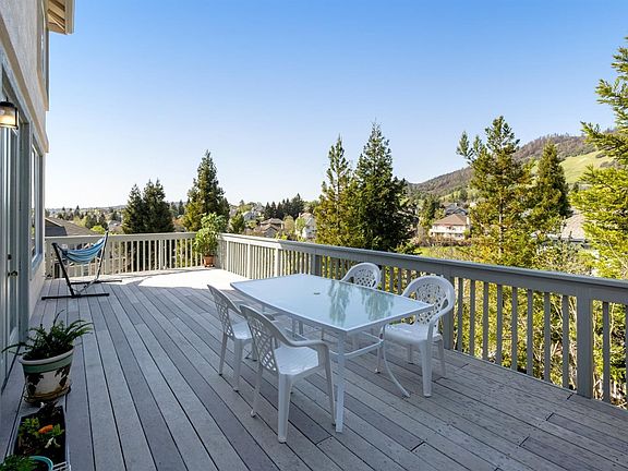 Million dollar view! This spacious Skyhawk home situated on an over-sized corner lot was built for entertaining! The kitchen opens up to a large family room and a private deck with gorgeous views! Formal living/dining room and extra master suite on the ground level. Upstairs is the main master suite, 2 more bedrooms, and a loft that can be closed off with movable privacy panels. The master bath boasts a jacuzzi tub with a view! In addition to the deck, there is a large patio for more entertaining and fun. Owned solar system and 220V in garage to charge your Tesla!