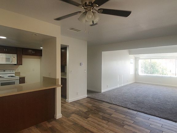 Large 1 story condo at approximately 1100 sq ft., with 2 bedrooms and 2 full bathrooms. Fully renovated throughout, with all new flooring, all new cabinets, new quartz counter tops, fully renovated bathrooms, and freshly painted throughout. Kitchen has been updated with all new lighting and is great for a food prep enthusiast. Large master suite offers a master bath with dual vanities, walk-in closet and a private balcony with new decking. A smaller second bedroom offers a full size closet, and a newly renovated guest bathroom across the hallway. Lots of cabinet and closet storage throughout. This unit offers a spacious living room and nice size dining room with a breakfast bar. All our rental units are 2 bedrooms and include: stove with oven, microwave, dishwasher and central air and heating. This is an all electric complex. Every unit includes a private oversized 1 car garage with a power opener, plus 1 additional assigned parking space inside the complex to allow off-street parking for 2 cars. Private dedicated laundry hook-ups are located inside every garage. No shared laundry facilities necessary. (Tenants will need to provide their own refrigerator and electric washer/dryers) Property is in a highly desirable Bonsall location. This is a small and quiet 21 unit complex with well maintained landscaping and on-site managers that help keep things running smoothly. Located just around the corner from The San Luis Rey Thoroughbred Training Center allowing for a short walk to see the horses train. Bonsall offers a quiet, small town feel, yet close enough to fun and amenities for all your needs. At just 15 miles to Oceanside pier, spend weekends at the local beach and hang out for the coastal night life. This property is conveniently located for commuters with quick access to Hwy 76, just minutes west of the 15 fwy, and a short drive to both Hwy 78 and the 5 Fwy. *We do not accept applications from any 3rd party service including Zillow. Before requesting an application, please read and follow our process below for all inquiries, tours, applications, etc. As detailed below, please reach out to our onsite manager in order to receive further assistance with this property. Pre-Tour phone interviews are "REQUIRED" before offering in person tours and applications. All tours are done by appointment only; no walk-in's are accepted. NON-NEGOTIABLE TERMS INFO: No Animals allowed regardless of size. No loud parties. No short term rentals. No water filled furniture or other water filled items. Parking inside the complex is assigned to tenants only and all visitors must park on the street. Grounds maintenance and cleaning is provided in all common areas. Rent includes water, sewer, and trash. No HOA. This complex accommodates electric appliances only. An up to date policy for rules of the complex will be included as part of the lease and will apply to tenants and guests. Our Online Resident Portal provides for convenient online rent payments and maintenance requests. 1 year lease term is required. No short-term options are offered. Subletting is not accepted. A fully completed Rental Application, Credit and Background Check will be required for all prospective occupants 18 years of age and older. PLEASE NOTE: All interested parties will need to contact our onsite manager at the designated phone number provided to receive further assistance with this property, including requests for applications and tours. Our manager can be reached by phone, text or voicemail. Messages will be returned during normal business hours in the order they are received. Due to time constraints and the volume of requests received, all incomplete inquires may be disregarded. No Subletting, No Co-Signers, No Bankruptcies, No Evictions.