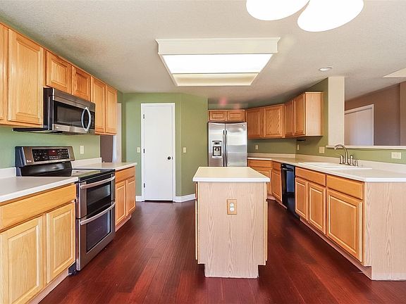 This Castle Rock two-story offers vaulted ceilings, a walk-in kitchen pantry, and a two-car garage.