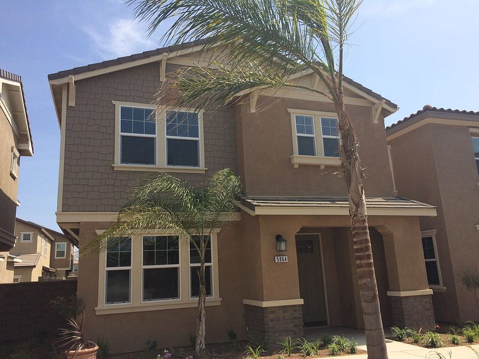 A newly constructed single house for leasing, moving condition, available July 19, 2017. 3 bedrooms, 2.5 bathrooms, 2 story single house, community Swimming Pool and Gym room within the clubhouse, back yard, landscaped front yard, 2 car garage attached, family room with a gorgeous kitchen, new carpet upstairs, new carpet and vinyl on the first floor, everything is completely new, never used or occupied, just bought, you will be the first to enjoy the brand new house if you are lucky, it is located in a totally brand new community of Eastvale city, close to freeway 15, 60, 91 and 71. Close to the shopping plaza and grocery store. It is a must see, it will not last long, don't miss it. Monthly rental is $2400 plus $2600 security deposit, total moving cost $5000. Call or text message for an appointment to see this lovely new house, please call or text message to the cell phone: 626-271-2718. One year lease. A good credit is a must, no bankruptcy, no eviction, no judgement & no late payment. Credit and references will be checked, The selected applicants should be checked by Credit Bureau. Tenants are responsible for all utility and gardening for front and backyard. Since it is a brand new house, no direction or location shown on Google map or GPS. For Your Convenience, Easy Driving Direction: KB Home, the Lodge, the Cross Streets : Limonite with Scholar Way at north, Second Entrance turn left and immediate right turn and parking at the street curb, Finally Destination at your left side. One Year Lease at least
