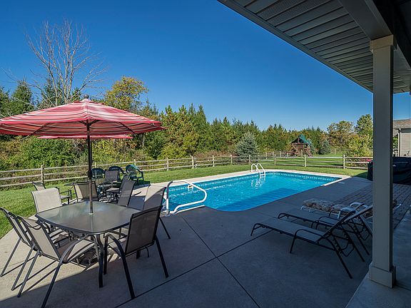 PARADISE! IN GROUND POOL, COVERED PATIO & SECLUDED LOT BACKING TO TREE FARM. ALONG WITH OPEN FLOOR PLAN, GREAT ROOM WITH STONE FIREPLACE, EAT IN KITCHEN W/ DOUBLE OVENS & BREAKFAST BAR. MASTER RETREAT W/EN SUITE. FULL BASEMENT W/ ADDITIONAL 1600 FINISHED SQ FT W/TWO LIVING AREAS, FULL BATH AND 4TH BED AND TWO EGRESS EXITS. HOME IS FIVE STAR ENERGY RATED WITH WHOLE HOUSE GENERATOR & MUCH MORE! HOA fee is $150 annually