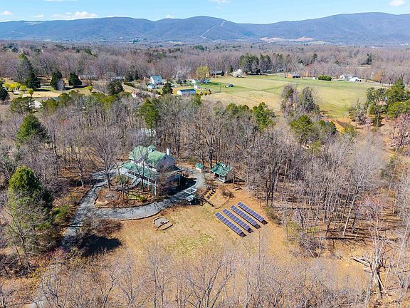Welcome to Rooster Hill! Custom built 5 bedroom home on nearly 6 acres w/ mountain views located in the foothills of the Blue Ridge Mountains. The modern farmhouse exterior has a wide wrap around covered porch - perfect for enjoying the property. Inside the house are 5 spacious bedrooms, 4.5 baths spanning over 3600 sq ft. The 2 first-level bedrooms each have their own kitchenettes, bathrooms, entrances, parking, & outdoor space. Special Features include: energy-efficient solar power w/ 40 panels & a solar generator; 1 gig fiber internet access; spacious kitchen w/ quartz countertops; 2 walk-in pantries; solid oak hardwood floors; soapstone hearth & trim accents throughout home; custom built-in wall units, cabinets & closets; standing seam metal roof; EV charging station; walk-in roof top cupola; massive attic storage. The property also includes a separate workshop, greenhouse, fenced veggie garden, & adorable chicken coop. Great Western Albemarle school district. Convenient to Charlottesville, UVA, Crozet, shopping, local restaurants & schools. Enjoy the income potential by renting the 2 first-level rooms as these owners have, or make a family compound. Purchase the adjoining acreage & rental home for more income or space.