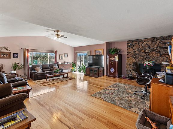This home is a beautiful ranch on almost one and a half acres with a 40X50 shop that's heated and insulated and has its own bathroom. This home is immaculate and well taken care with a newly renovated kitchen in 2018. The kitchen has stylish custom cabinets accented by rich dark granite countertops. It has an open floor plan with the kitchen opening up to the living and dining room. The front yard is fenced for the dogs and kids to play. This home also has a unique heating system with a central boiler located outside the house that runs on wood which heats water to supply heat for the furnace in the house and shop. Located right off Hwy 50; It would make a perfect setup for someone looking for a home with business possibilities and highway visibility and access. Make this your home with a personal shop/Man Cave or turn it into a great on site business...its up to you!