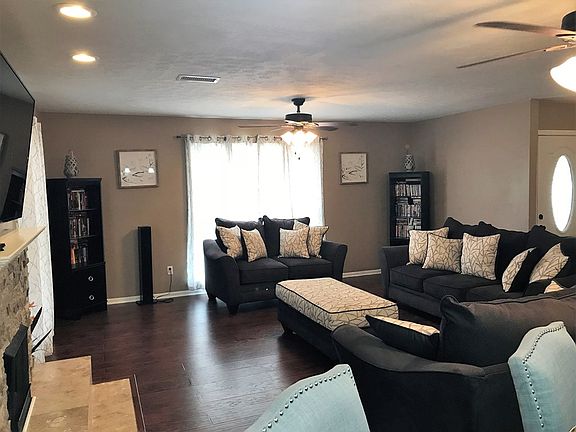 Charming updated 3 bedroom, 2 full baths, 1619 SF home. Open plan floor plan with a spacious great room and kitchen with granite counter tops, wood flooring, stainless steel appliances, updated wood cabinets, tile back splash and a breakfast bar. Large bedrooms. Granite counter tops and faucets in bathrooms. Separate garden tub/shower in master bath. Separate laundry room. Large fenced backyard. Covered patio. Convenient location to shopping and more!