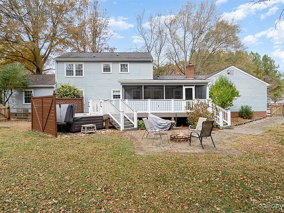 This charming 2-story is nestled on a nearly 1-acre lot & loaded with great features both inside & out! The exterior boasts mature trees & welcoming covered porch out front & oversize deck, relaxing patio, hot tub, & fenced yard out back; Interior features upgraded kitchen with quartz counters, tile backsplash, SS appliances, & breakfast bar overlooking a cozy great room with wood burning stove; Great home office with built-in's & desk; Large screen porch overlooking the peaceful back yard provides incredible space to relax; Convenient laundry/utility room tucked behind the kitchen & adjacent to the HUGE garage (620 sq/ft) that can easily accommodate two full-size vehicles & more; Need more storage? There's two sheds -- perfect for workshop & yard equipment; Well maintained -- HVAC in 2022, water heater in 2023, deck/hot tub in 2020, replacement windows, recently updated bathrooms & central vac; Convenient location just mins from I-85 & just about anywhere! No HOA & plenty of parking!
