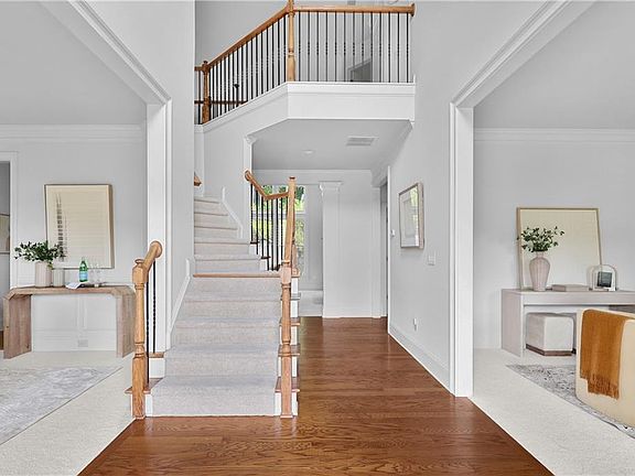 Welcome to 5865 Trailwood Ct – a beautifully updated 3-sided brick home nestled in the highly sought-after Hillside Trace neighborhood and top-rated Lambert High School district. This move-in ready residence offers a perfect blend of timeless elegance and modern updates. Step inside to a grand two-story foyer filled with natural light. The main level features brand new carpet, resurfaced hardwood floors, and fresh interior paint throughout. The kitchen shines with granite countertops, a large island, and recently updated appliances, all complemented by a new gooseneck faucet and stylish new chandeliers in the kitchen and dining room. The open-concept layout flows seamlessly into a lofted two-story living room, boasting a wall of windows, built-in bookshelves, and a cozy fireplace. A guest bedroom and full bath on the main level offer flexibility for multi-generational living or a private office. Upstairs, the oversized primary suite features tray ceilings, ample windows, and a spacious en suite bath with a jetted tub, separate shower, dual vanity, and a large walk-in closet. Three additional bedrooms and two full bathrooms provide plenty of space for family or guests. Enjoy outdoor living with a freshly pressure-washed patio and driveway, exterior paint completed in 2024, and a private, wooded backyard perfect for entertaining. This vibrant swim/tennis community offers resort-style amenities including tennis courts, an Olympic-sized pool, playground, and clubhouse with a catering kitchen. Don’t miss your chance to own this beautifully maintained home in one of Suwanee’s most desirable neighborhoods. Schedule your private tour today!