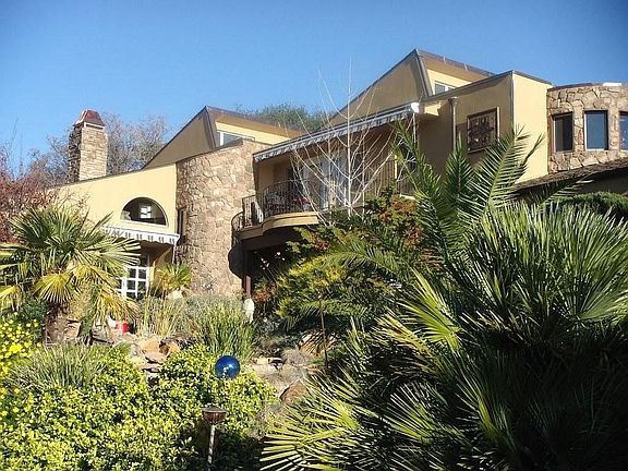 Custom home on 26 acres in a private sub-division of 20 acre minimum parcels. Energy efficient with tankless water heater, solar electricity (owned), wood burning stove and propane fireplace, whole house backup generator. At an elevation of 1340 feet, you get valley views and internet (12Mbps). Recent cell tower added to area for excellent coverage. Well maintained and updated, most recent was kitchen remodel, new A/C system, new roof, pool house added, pool refinish with LED lights just completed. Swimming pool with hot tub spa, full size sand volley ball court and horseshoe pits. See http://www.lifeandlinda.com/p/house.html for a house tour.