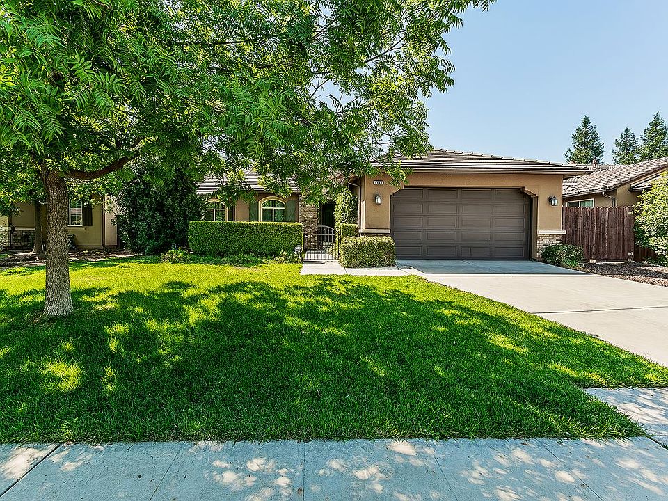 Located in a quiet cul-de-sac within the desirable Central Unified School District, this immaculate McCaffrey-built single-story home offers 3 bedrooms, 2 bathrooms, and a spacious open floor plan perfect for entertaining and everyday living. The entry welcomes you into a spacious great room featuring beautiful hardwood flooring and a cozy fireplace, perfect for chilly evenings. Hardwood continues through the dining area and hallway, while the bedrooms are finished with laminate flooring for added comfort and easy maintenance. The chef's kitchen features granite countertops, a large island with a breakfast bar, a pantry, and a gas cooktop, along with abundant cabinet space. The dining area is perfectly positioned between the kitchen and living room, making gatherings a breeze. The private Owner's Suite is tucked away at the back of the home and features a spa-like bath with a soaking tub, walk-in shower, dual vanities, and ample storage. Two additional bedrooms and a full bath provide comfort for family or guests. Step outside to a large backyard with a covered patioperfect for barbecues, relaxing, or watching the kids play. Enjoy fresh fruit from your very own lemon, peach, avocado, and kumquat trees. Additional conveniences include a gas hookup for a grill ,pre-wiring for exterior cable/satellite and an extra deep garage. Located near highways, shopping, and schools, this well-maintained home offers it all. Don't miss the chance to make it yours!