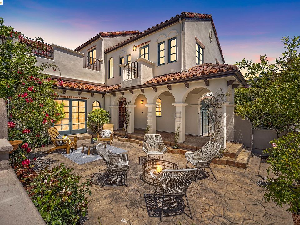 Views for days from this perfectly situated Upper Rockridge home. It boasts grand architecture with the flexibility and convenience of a modern home. Custom built by its only owner who bought in the '60s and rebuilt in the '90s. Enter through the gated courtyard to the exquisitely carved front door. The main floor is level in from the attached 2-car garage and features a large eat-in kitchen, and gracious formal living and dining rooms. The French doors in the living room open to the courtyard, an ideal flow for elegant entertaining. The deck off the kitchen is also accessed by this floor’s bedroom, which could also serve nicely as an office or studio. The tile-inlaid staircase leads you up to a full bath and two more bedrooms. The top level is the jewel of this home; a den with soaring ceilings, an upper deck with four bridge views, and a primary suite with 2 closets, shower and tub and a balcony facing the morning light. The bottom floor has four plus space brimming with potential including a large workshop with exterior access and a full bathroom. Though it feels above it all, this house is close to the Rockridge district. A rare mix of spectacular architecture, modern flow, and untapped possibilities.