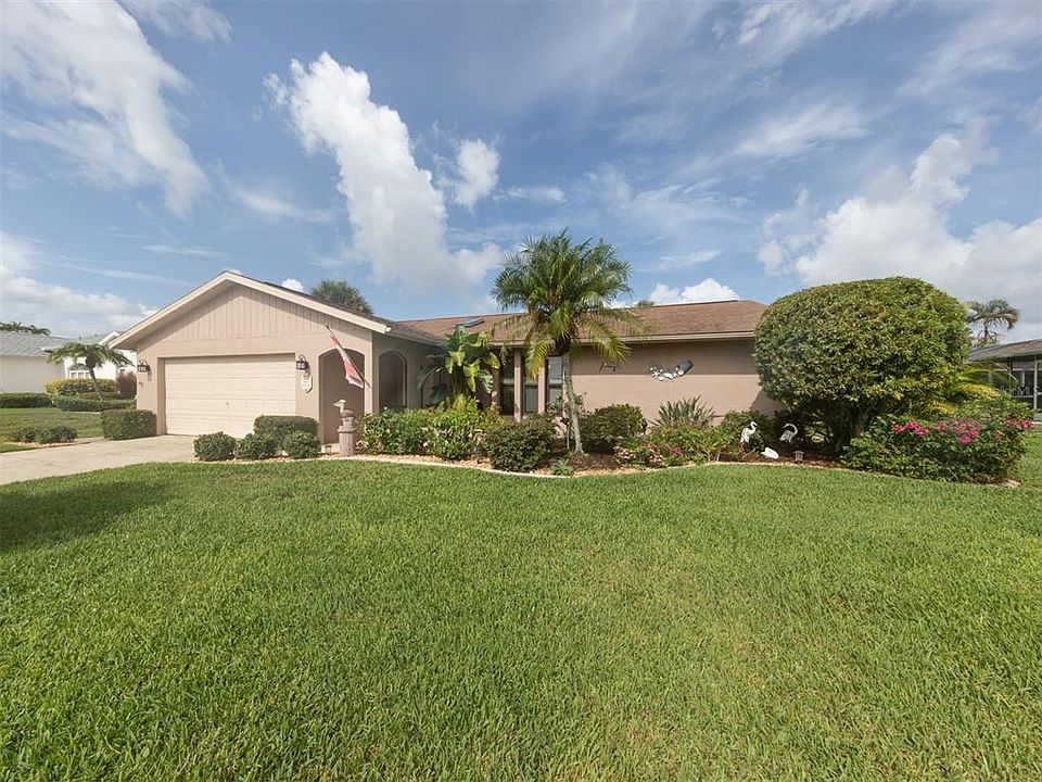 Location, location, location determines the value of a property today and forever. Welcome to this beautiful three-bedroom, two-bath home featuring cathedral ceilings, updated kitchen and bath, and sparkling pool waters in desirable Gulf View Estates with HOAs only $265 annually. Home is approximately three miles from Manasota Key, Venice Beach and historic downtown Venice. Wellen Park, situated along a manmade lake with boardwalks, kayaking and restaurants, is also just a few miles away. Enter this sweet home and notice the skylight at the entrance bringing light into the great room overlooking the pool. Sliding doors that pocket open to the private pool area, one that is partly covered and surrounded by palm trees turning it into your very own tropical oasis. To the right also overlooking the pool is the open kitchen with great light, beautiful granite countertops, generous cabinetry and stainless steel appliances. There is also a convenient pass-through window from the kitchen to the pool area, ideal for cocktail time! An elegant dining room sits in the front featuring a large window with views to the entrance garden. The well-sized guest bedrooms to the right share a full bath with a cabana door to the outside. The split bedroom floor plan design allows guests and owners to have their own space with privacy and comfort. The primary bedroom to the left of the great room boasts an en-suite updated bath, two walk-in closets and sliding doors that lead to the pool. Imagine getting out of bed in the morning and jumping into the brilliant waters of your beautiful, heated pool. Great location, perfect home. This is the life you deserve. Schedule your appointment today. Room Feature: Linen Closet In Bath (Primary Bedroom).