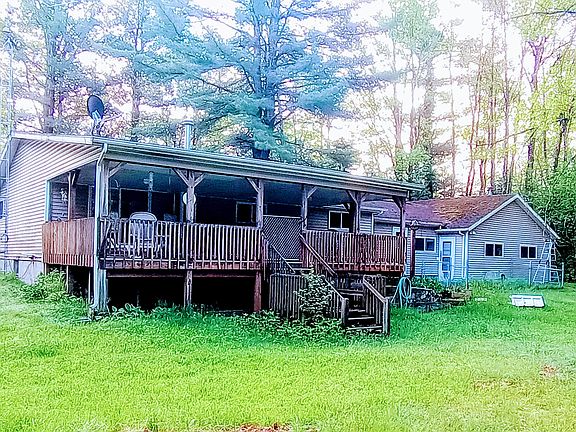Escape to your own private paradise: 20 acres await! Offering the perfect blend of rural charm and modern comforts. This property boasts 20 acres of mixed woodland, perfect for hunting, hiking, exploring, or simply enjoying the peace and tranquility of nature. With 3 serene ponds, you'll have endless opportunities for fishing or just to watch the sunset paint the water in vibrant hues. For the avid hunter, this property is a dream come true. The diverse mix of trees provide ample cover for deer, turkey, and other wildlife, ensuring exciting hunts throughout the year. Step inside the cozy home and be greeted by an open concept living space, perfect for entertaining guests or simply relaxing with family. The large covered back deck offers a seamless transition between indoor and outdoor living, allowing you to enjoy the fresh air and scenic views year-round. Property features a 960 sq ft pole barn and a 16' x 22' woodshed. The home also has a full basement for all your extras. This property offers more than just a place to live. It's an opportunity to create a lifestyle that's truly your own. Don't miss out on this rare opportunity to own a piece of paradise. Home is to be sold as is.