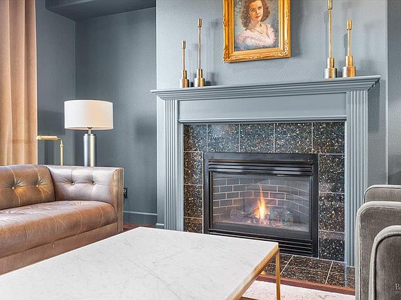 Custom cabinetryStriking stone surfacesTwo inviting fireplaces