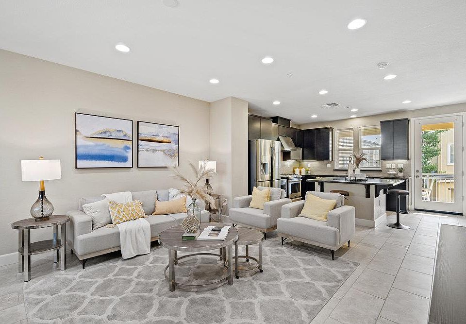 Welcome to your modern and luxurious home in the heart of the vibrant Avenue One community. This contemporary and spacious townhome, boasting over 1,700 sq ft of living space, is the perfect fit for you. The ground floor features a roomy en-suite bedroom that's just steps away from a charming patio and convenient area to relax. The family room is flooded with natural light, creating an inviting atmosphere, and it's connected to the chef-style kitchen with stainless steel appliances, a spacious island, and a thoughtfully placed pantry for easy meal prep and get togethers. Upstairs, you'll discover generously sized bedrooms with walk-in closets, plantation shutters, and stunning views. Plus, the community offers fantastic amenities like a pool, gym, and clubhouse, making it easy to stay active and entertained. With parks, public transit, shops, and freeways nearby, you and yours will thrive in this modern and family-friendly townhome. Embrace the best of San Jose living today!