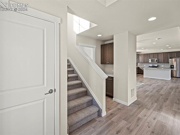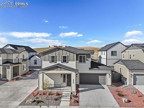 This fantastic two-story home is located in a low-maintenance neighborhood and is ready for you to move in now! Situated on one of the larger lots, it is still easy to maintain for those with busy lifestyles. Upon entering, you are welcomed by a spacious living room, an open main floor plan, and a walkout to the back patio. The kitchen boasts a large center island, ample countertop space, and plenty of cabinets. Upstairs, the primary suite includes a full bath and a generous walk-in closet. There are also two nicely sized additional bedrooms and an upper-level laundry room. Another full bath completes the upstairs. The home is built on a crawl space and is conveniently located with easy access to Woodmen, Powers, shopping, and more!
