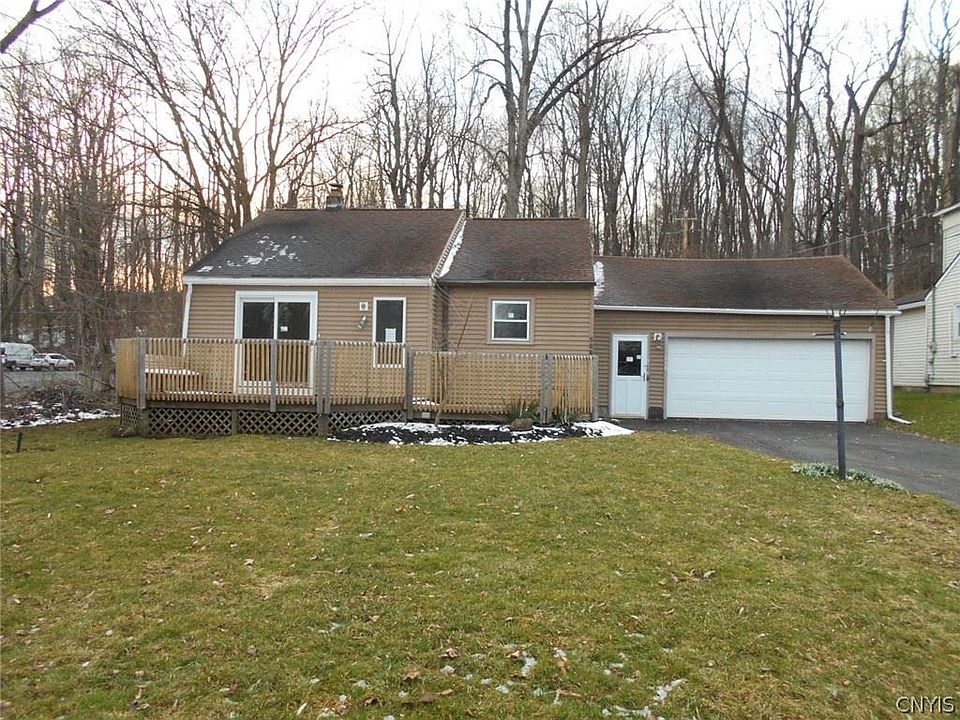 Here's the perfect opportunity to buy a 2 bedroom 1 bath Cape Cod home near Springside Inn. House is situated at the end of a private road so no through traffic. There are sliding glass doors in the living room, master bedroom and dining room that offer much natural lighting. House has a 2 car attached garage. Outdoor features make entertaining easy with an oversized deck off the living room. House is located across from Owasco Lake. Taxes are shown without exemptions.