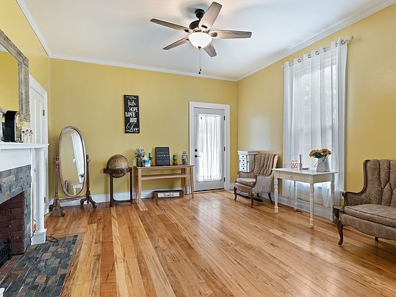 Step into the front of this home into a large sitting room perfect for an office, a library or after dinner lounging or hosting. The sitting room flows into the beautiful formal dining room with high ceilings which helps it feel spacious and reminds you of the timeless allure of its area.